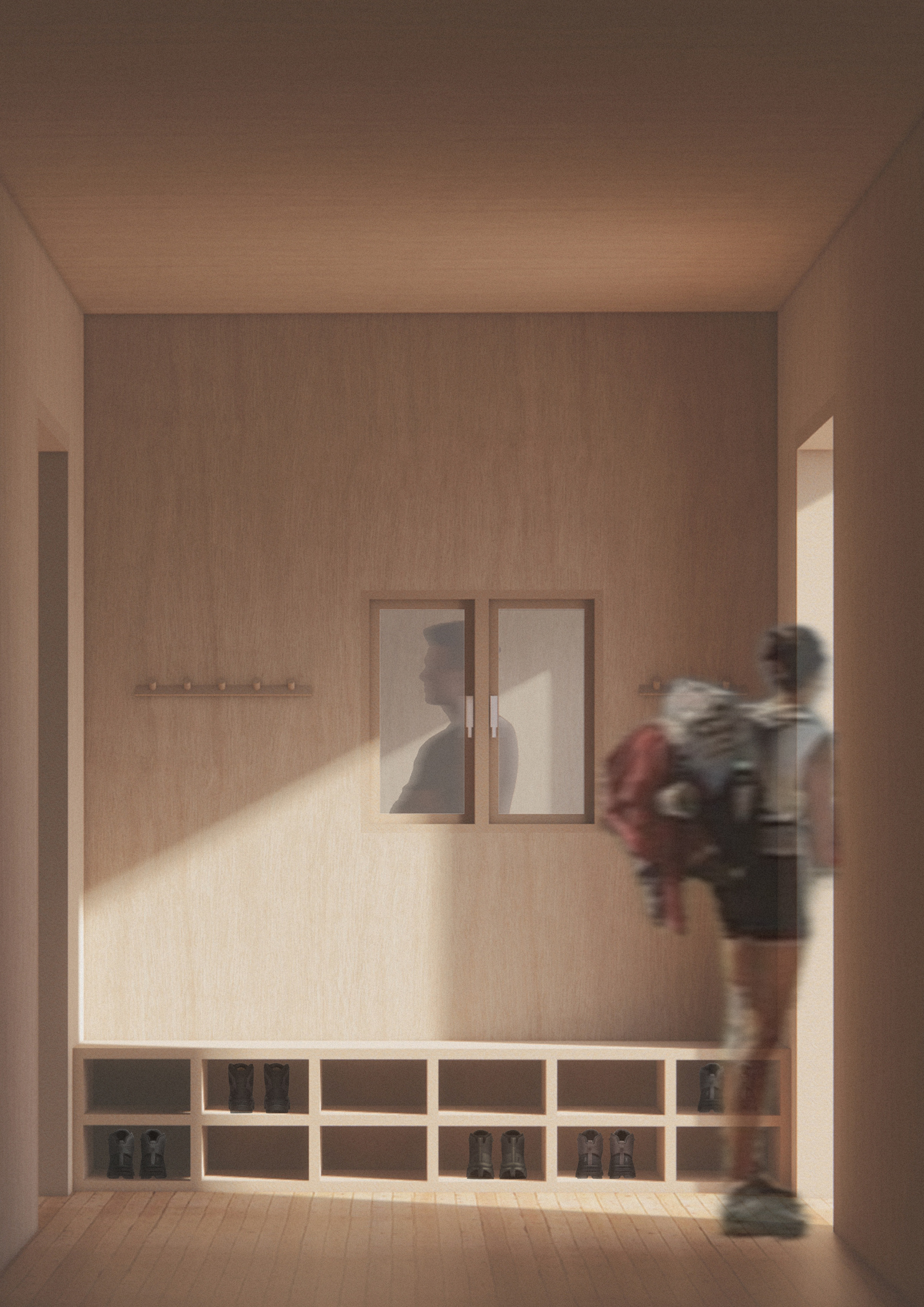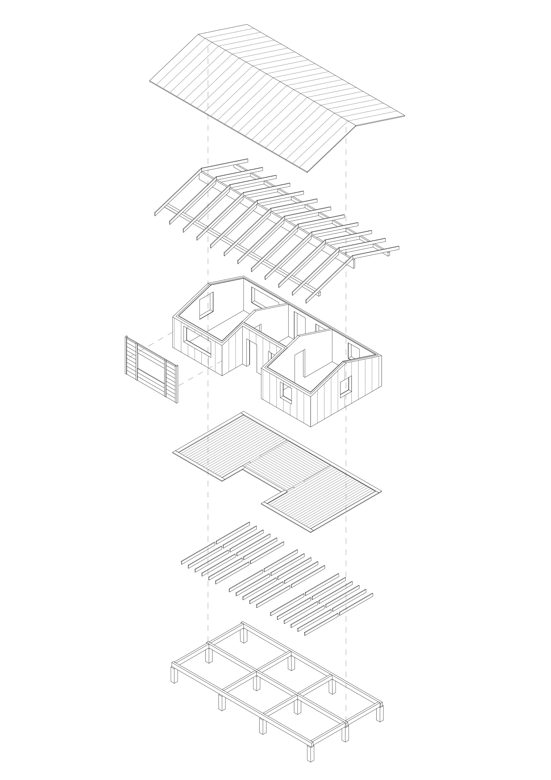 This project explores a small mountain hut for overnight stays along hiking trails. The design focuses on spatial efficiency, low maintenance, and shared spaces that encourage interaction between hikers. Communal areas form the core of the building and are oriented toward the surrounding landscape, while smaller alcoves provide moments of privacy and rest. The structure is built using IsoTimber, a solid wood system suitable for construction in remote locations. Its demountable design supports reuse of materials and a circular approach to building in sensitive natural environments.